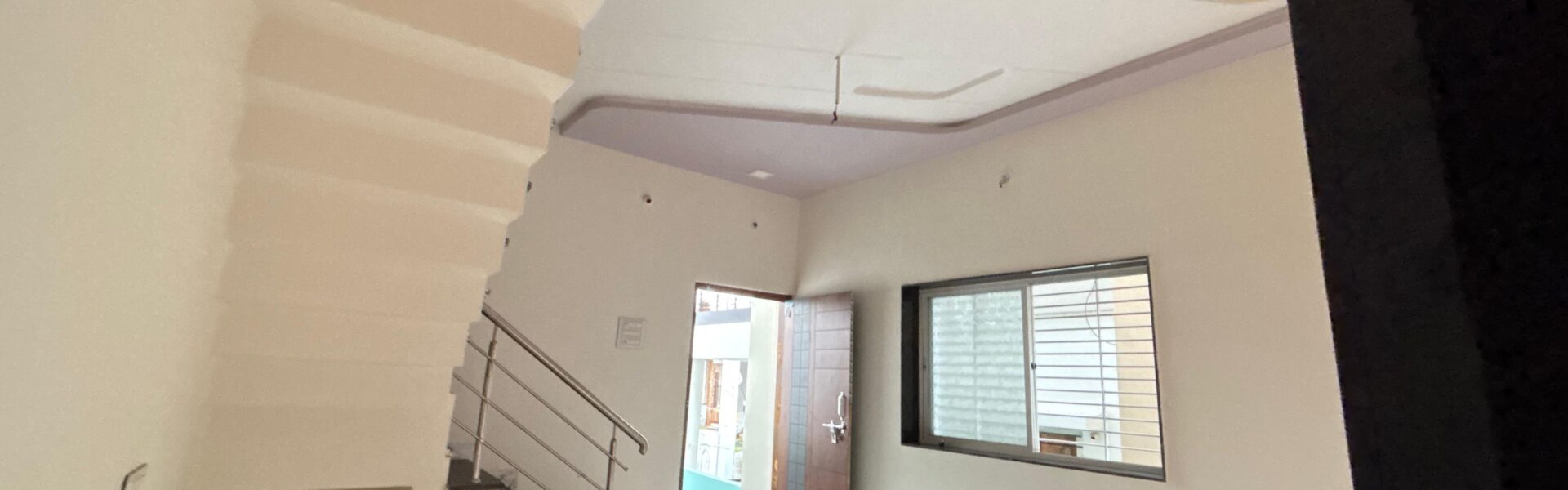 हॉल व एका बेडरूम मध्ये आकर्षक पी.ओ. पी. आणि वॉलपुट्टी